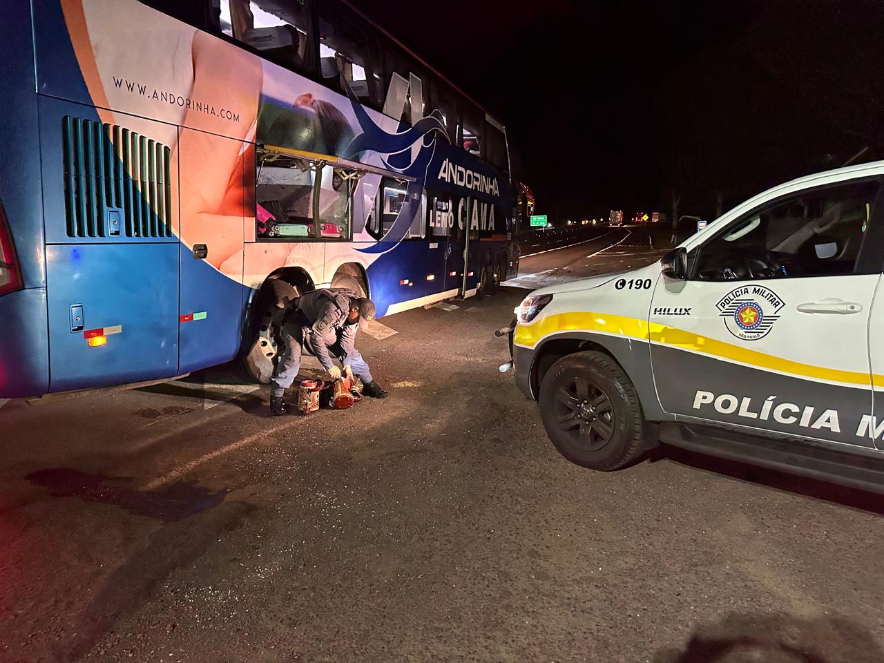 Na noite do dia (15), durante o desenvolvimento da Operação Impacto a equipe do Policiamento Rodoviário de Presidente Prudente/SP, abordou um ônibus interestadual, com itinerário Campo Grande/MS x Rio de Janeiro/RJ e, durante fiscalização, foi localizado em duas garrafas térmicas, (mais especificadamente em suas paredes), uma certa quantidade da droga cocaína em pasta, que após pesada perfizeram um total de 1,980 kg (um quilo e novecentos e oitenta gramas) de pasta base de Cocaína, onde após diligências foi constatado que era de propriedade do passageiro da poltrona 37, Sr. I. C. A. de 22 anos, de nacionalidade Boliviana.